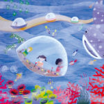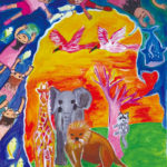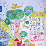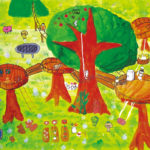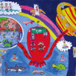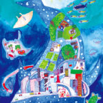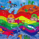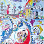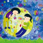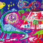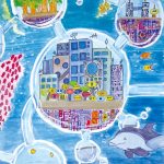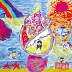 子どもたちの楽しい夢、明るい夢、不思議な夢に囲まれた素敵な時間を過ごすことができました。見れば見るほど描かれた世界にひき込まれていき、未来の世界を冒険している気もちになりました。子どもたち一人一人が形や色に込めた思いや願いがいつの日か実現しますように…。