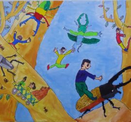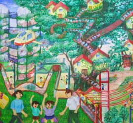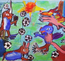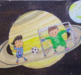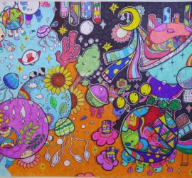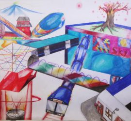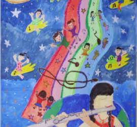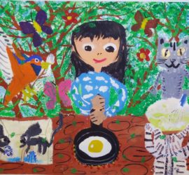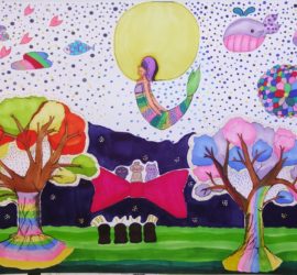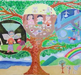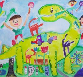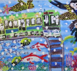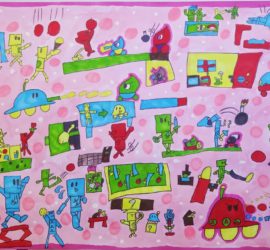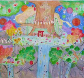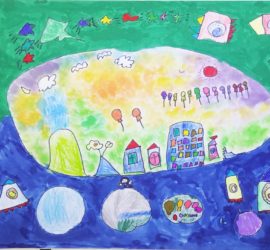 夢いっぱい、想いがあふれる作品があつまっていました。子どもたちが思い描く夢の世界が多様な形で表現されていたと思います。細部まで丁寧にたくさんの色を使い子どもらしく表現されていました。