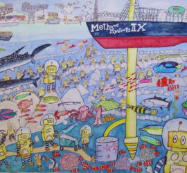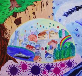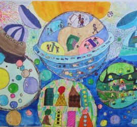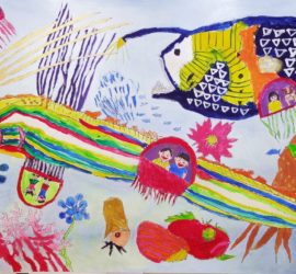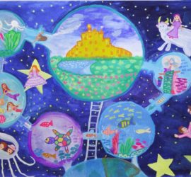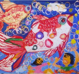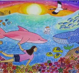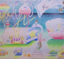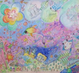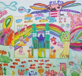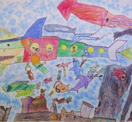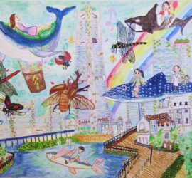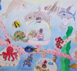 どの作品も夢を自由に表現し、審査しながら、想像しながら描いている子どもの笑顔が浮かんでくる絵ばかりでした。全体的にみて海の生物を夢に反映させている作品が多かったこと、また、コロナ過の終息を願って世界の人々のマスクのない笑顔の作品が印象に残りました。コロナ過の終息が見え、日常を取りもどした子どもの夢はどのように描かれるのか、来年以降の作品も楽しみにしています。