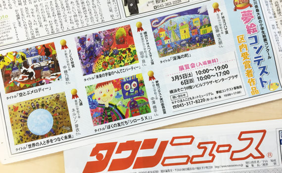 先日のタウンニュース旭区版に引き続き、鶴見区版、中区・西区版、泉区版にも夢絵コンテストの受賞作品・受賞者が掲載されました! 記事を読んでいると、みんなが絵に込めた思いや、気づかなかったこだわりなどが知 […] タウンニュースに入賞作品が続々と掲載されています!